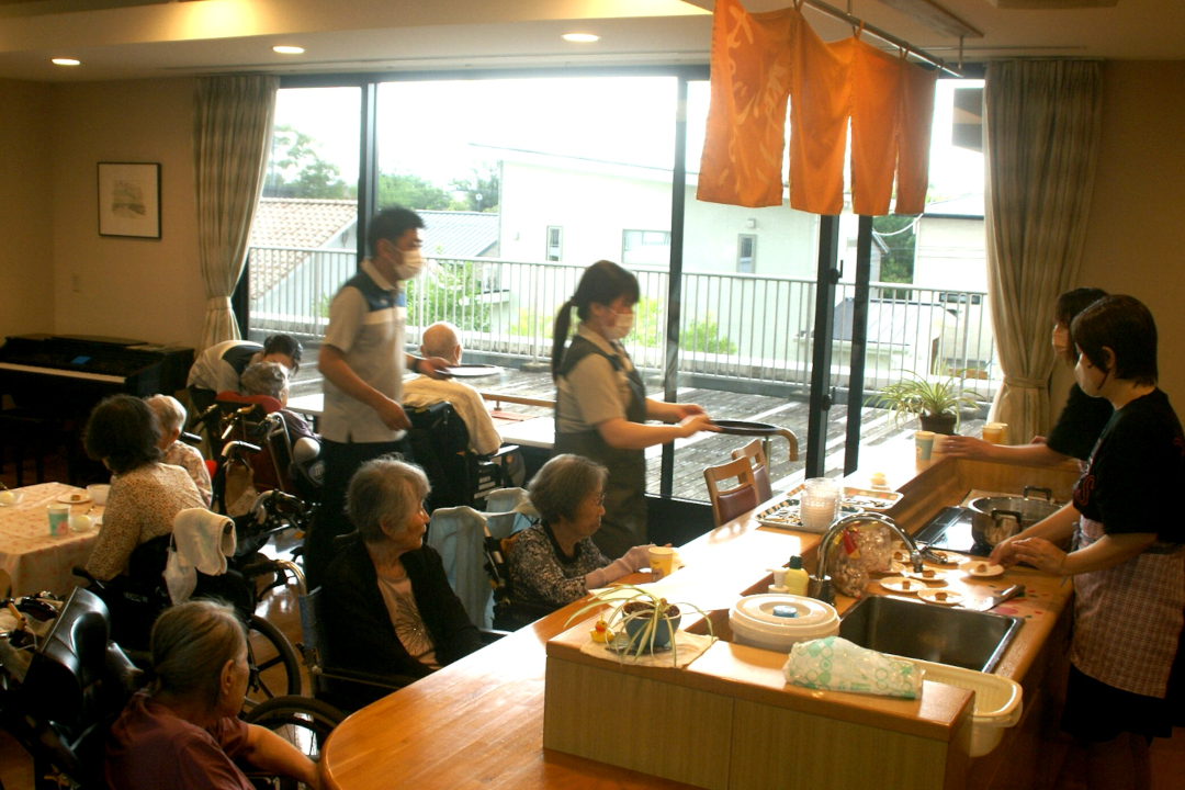 利用者一人一人の状態に合わせ、普通食・刻み食・極刻み食・ムース食・ミキサー食を 提供しています。また、ご利用者の希望に沿って、個別対応も行っています。